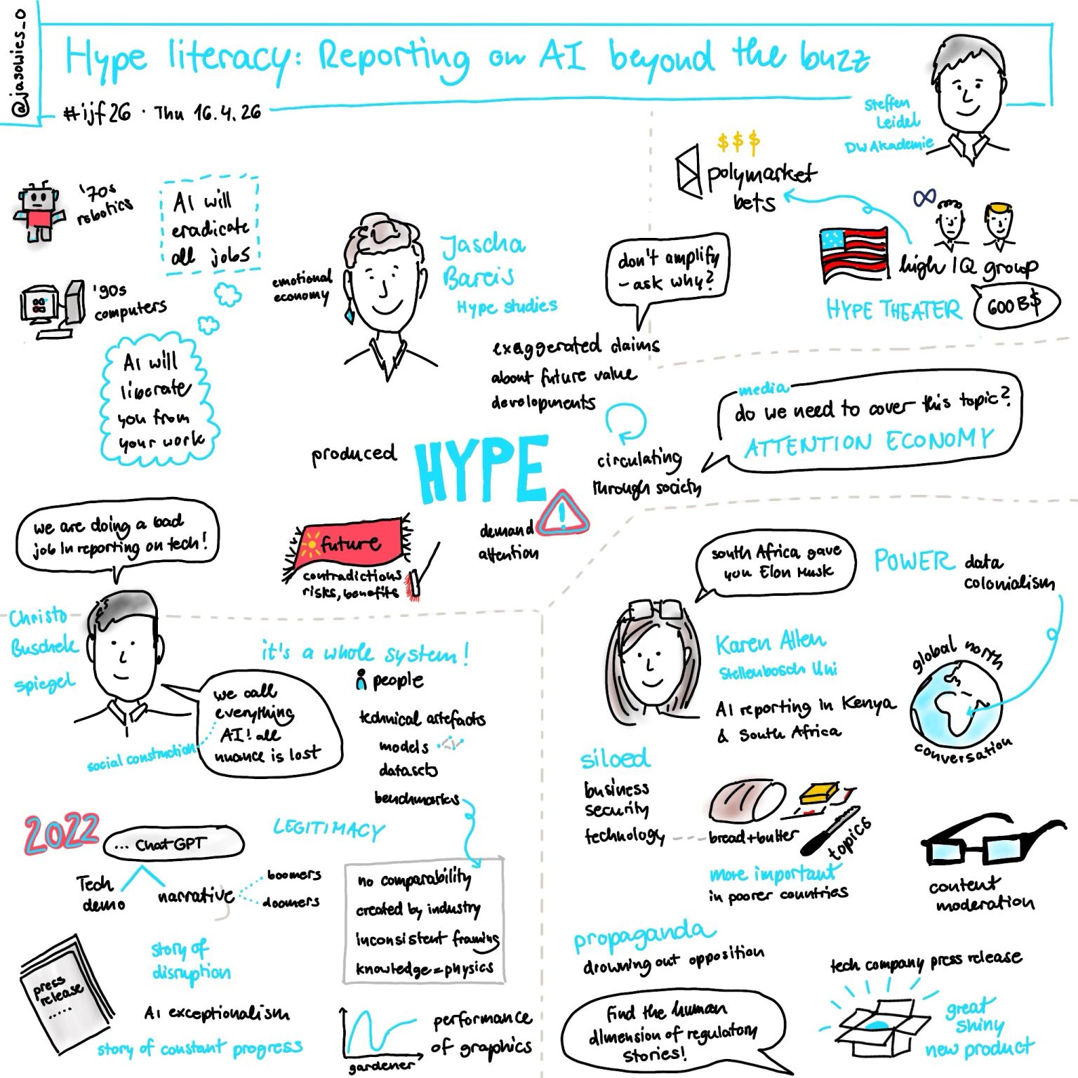 🔹 Karen shared research on AI coverage in South Africa and Kenya, showing how reporting often "flip-flops between euphoria and dystopia."